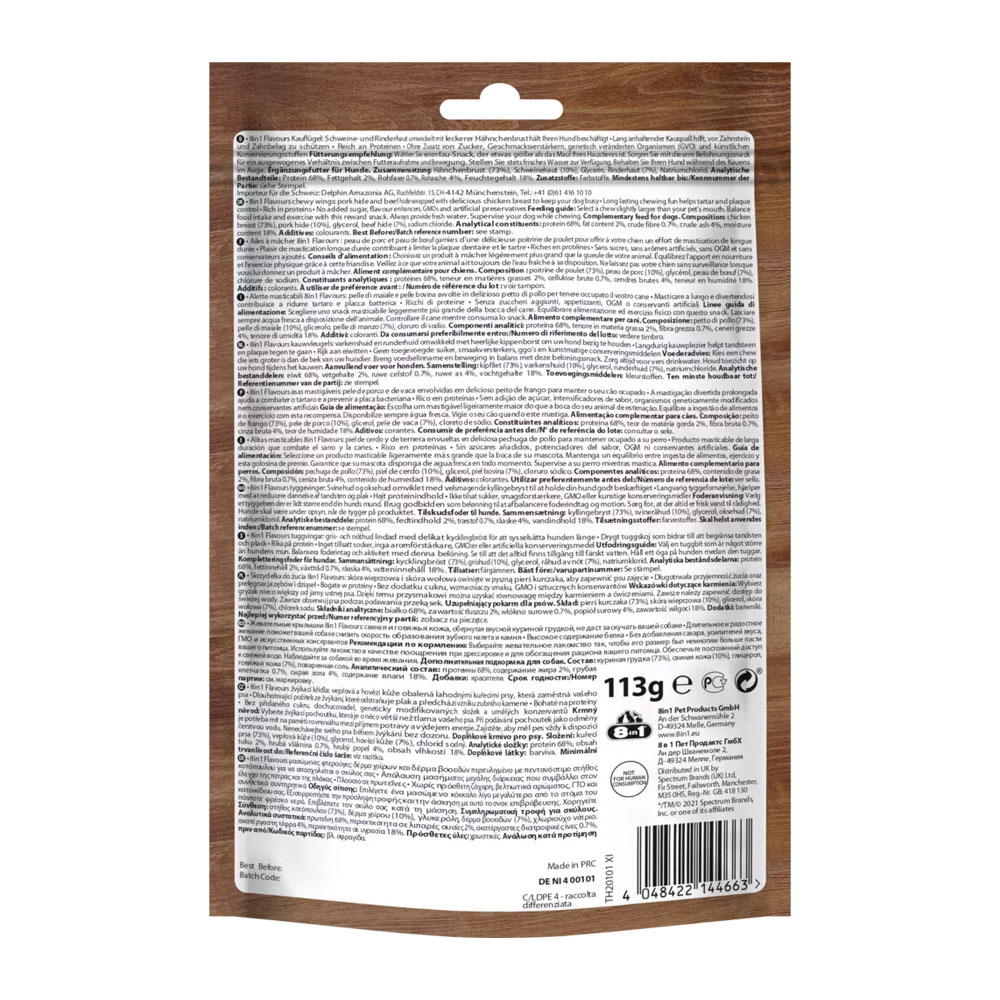 8in1 kārums suņiem - spārns ar vistas fileju "Triple Flavour Wings" 113 g N6