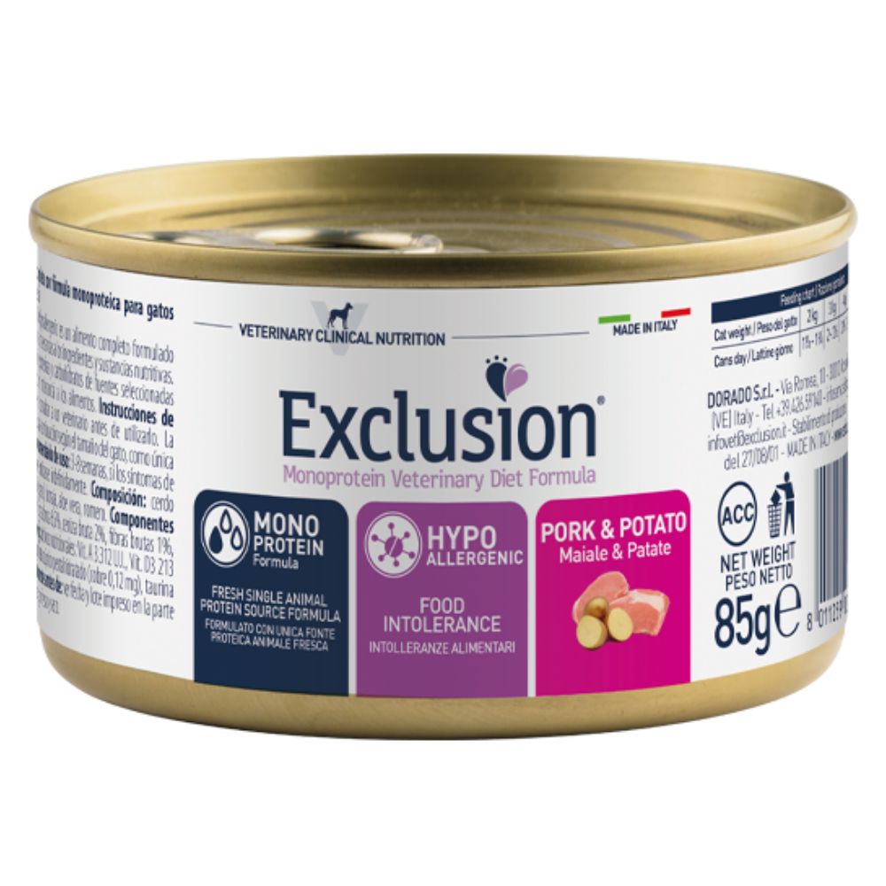 EXCL Hypoallergenic konservi kaķiem ar cūkgaļu un kartupeļiem 85 g
