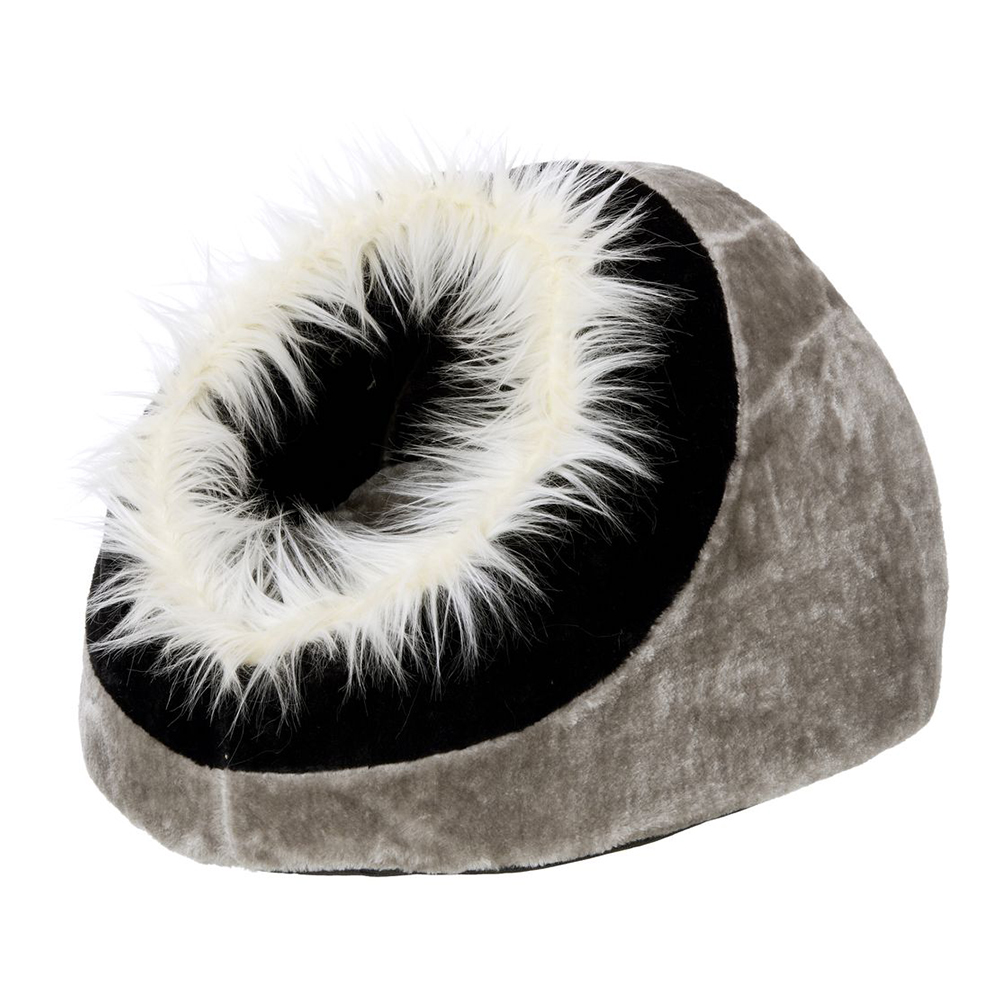 FLMG guļvieta-māja kaķiem plīša melna-pelēka-krēmkrāsas 40x40x28cm 65564