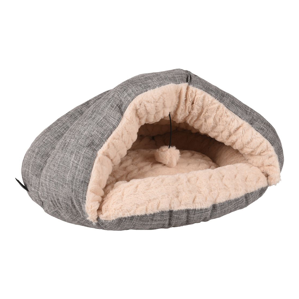 FLMG guļvieta-kabata kaķiem audums un plīšs pelēka ar bumbiņu Zupo 49x40x22cm 560755