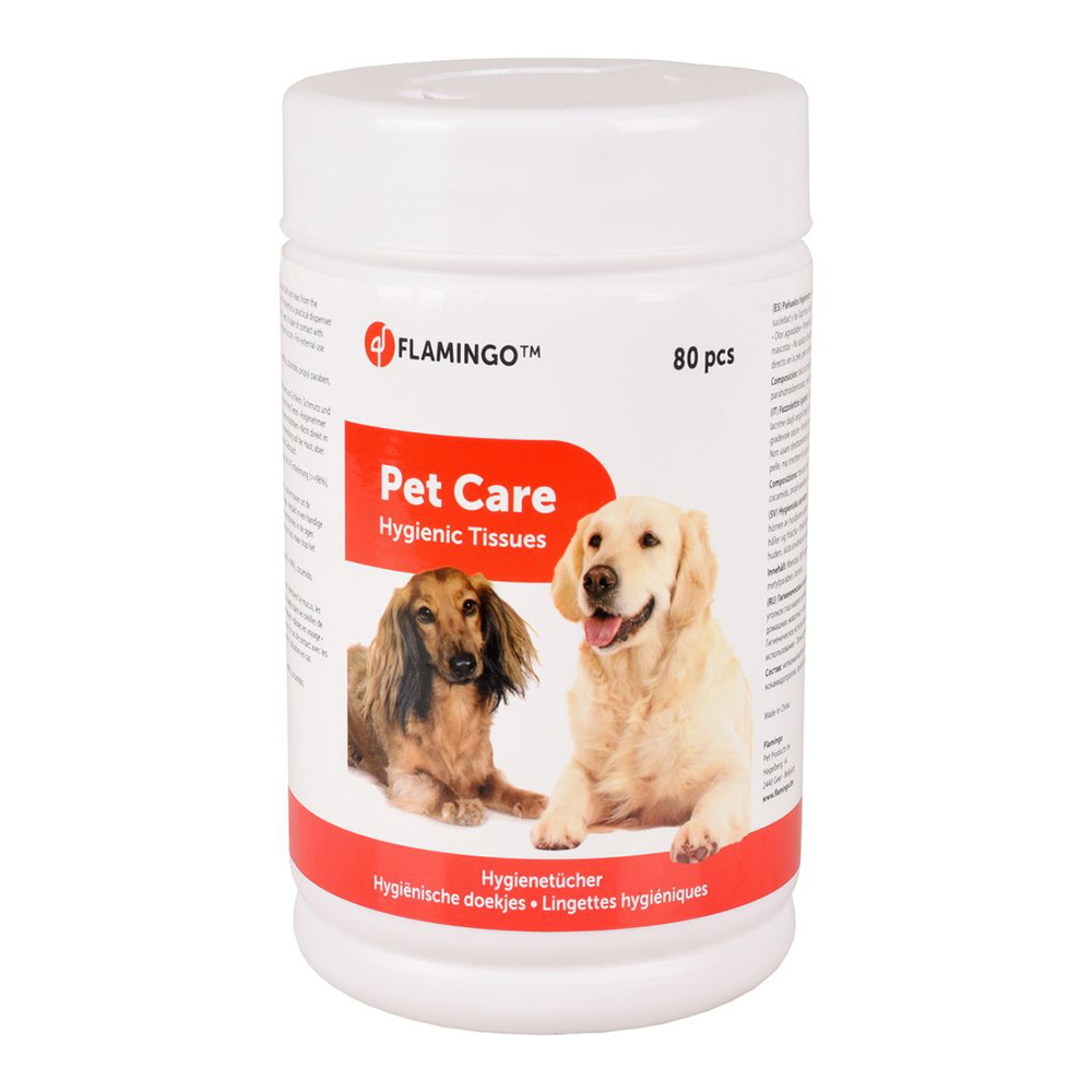 Tikai ārīgai lietošanai dzīvniekiem. Ļoti mīkstas, acu un ausu tīrīšanai. Ar patīkamu smaržu. Palīdz notīrīt gļotas, netīrumus un asaras no acu kaktiņiem, kā arī auss sēru un netīrumus no ārējās auss iekšpuses. Praktisks iepakojums palīdz uzglabāt salvetes un pasargāt no izžūšanas. Teicami piemērots ceļojumiem. Ieteicams lietot tikai dzīvniekiem. Izvairīties no tiešas saskares ar acīm. Ja saskāries ar acīm, acis rūpīgi izskalot ar tīru ūdeni. Var lietot saskarē ar ādu, bet pārtraukt lietot, ja novērojams ādas kairinājums un apsārtums. Sastāvs; neausts audums (80% kokvilna, 20% poliesters), dejonizēts, ar UV sterilizēts ūdens (>=98%), cocamido, propilparabēns, metilparabēns, borskābe. Iepakojumā 80 salvetes. Izcelsme: Flamingo Pet products, Beļģija. Izplata: „BERTAS NAMS” SIA, Ventspils iela 50, Rīga, 80000060