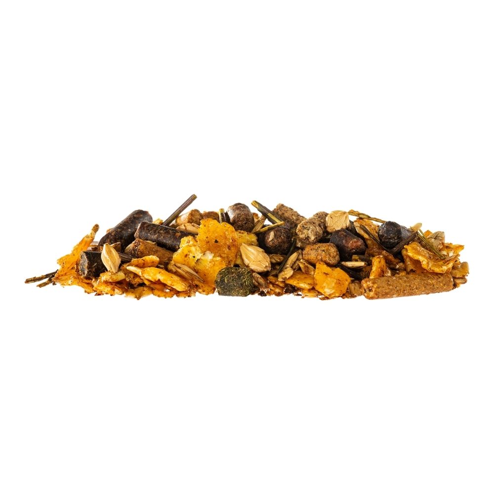 Papildbarība, garšīgs placinātu graudu maisījums (muslis) aktīviem zirgiem, ikdienas barošanai. Satur Aktiv-Paket kompleksu muskuļu aizsardzībai slodzes laikā (E vitamīns, biotīns, selēns un Omega 3). Satur LLL kompleksu (linu eļļa, lucerna, dzīvie raugi) - kuņģa un zarnu trakta optimālai darbībai, spīdīgam apmatojumam, un ir viegli uzņemamas enerģijas avots. Satur augstvērtīgas minerālvielas stiegru, saišu un locītavu veselībai. Sastāvs. Hidrotermiski apstrādātas kukurūzas pārslas 38%, hidrotermiski apstrādātas miežu pārslas 30%, kaltētas lucernas milti 10%, ābolu mīkstums 10%, melase 4.3%, kviešu klijas 2%, rafinēta augu eļļa 1.1%, linu eļļa 1%, kalcija karbonāts 1%, monokalcija fosfāts 0.5%, nātrija hlorīds 0.5%, magnija oksīds 0.2%.