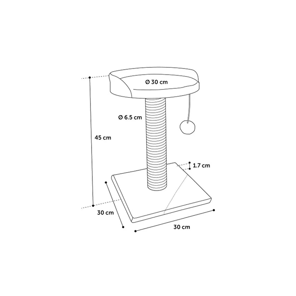 FLMG Skrāpis kaķiem -Koks ar bumbiņu,Clark Grey 30x30x45 cm 561036 Lietošanai dzīvniekiem. Kaķu nagu skrāpis-koks. Veicina veselīgu vingrošanu. Novērš no Jūsu kaķa mājas mēbeļu nepatīkamas skrāpēšanas. Materiāls: kokvilna. Nodrošiniet savam kaķim mājīgu vietu, kur atpūsties un pakasīties. Ar 6,5 cm diametru un 4 mm džutas virvi jūsu kaķis var asināt nagus .Turklāt tam ir rotaļu bumbiņa uz auklas un mīksts plīša tronis snaudēšanai. Izcelsme: Flamingo Pet products, Beļģija. Ražots: ĶTR. Izplata: "BERTAS NAMS" SIA, Ventspils iela 50, Rīga, 80000060