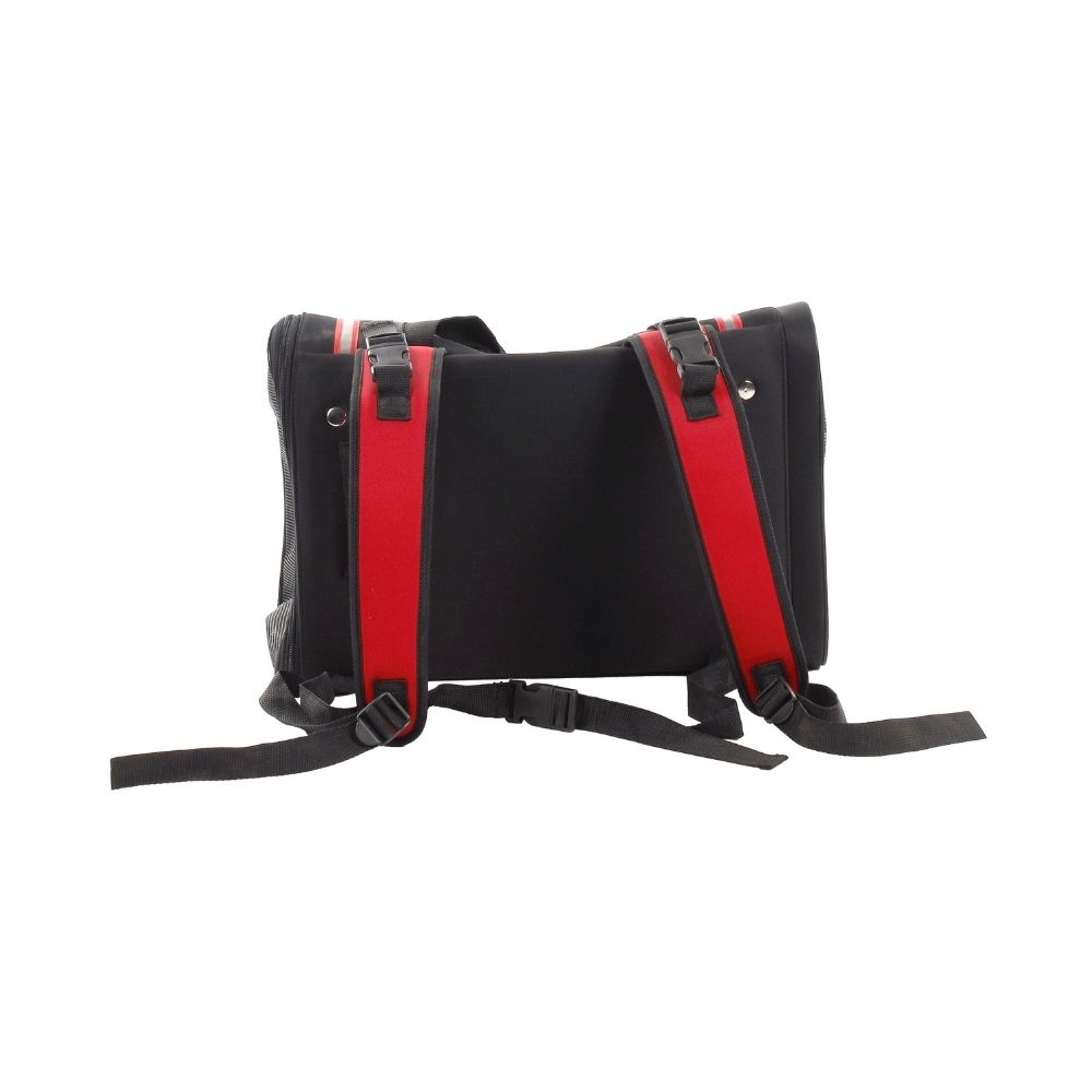 FLMG Mugursoma "Domi" Melni/sarkanā krāsā 65x46x29 cm 5331471 Lietošanai dzīvniekiem. Mugursoma "Domi". Pārvadājiet savu mājdzīvnieku ērti un jauki ar šo mugursomu. Somai ir trīs atveres ar rāvējslēdzēju priekšpusē un sānos. Ideāls veids, kā paņemt līdzi savu četrkājaino draugu, lai kur jūs dotos. Mazgājams ar rokām. Noņemams pamats ar elastīgām lentām. Ar pārnēsāšanas siksnu, atstārojošām sloksnēm un cilpu automašīnas drošības jostai. Pavada ar karabīni papildus drošībai. Pateicoties rokturim, var izmantot kā pārnēsāšanas somu. Maksimālais dzīvnieka svars: 8 kg.Materiāls: Neilons. Izmēri: 65 x 46 x 29 cm. Izcelsme: Flamingo Pet products, Beļģija. Ražots: Ķīna. Izplata: "BERTAS NAMS" SIA, Ventspils iela 50, Rīga, 80000060