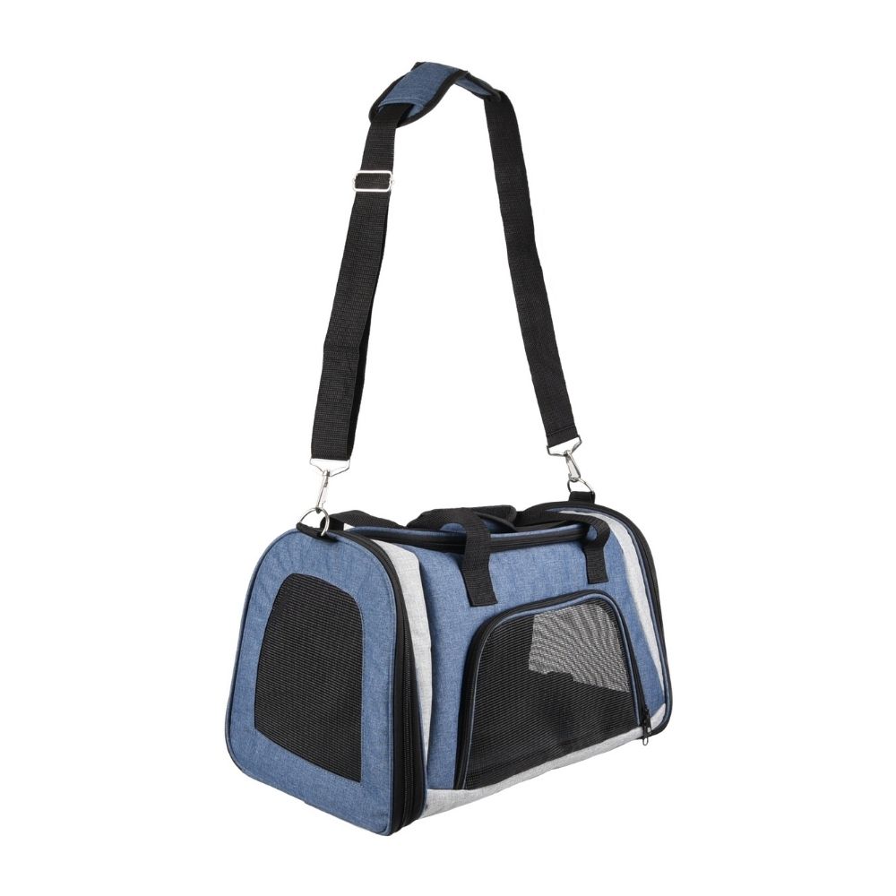 FLMG Pārnēsāšanas Soma Martha Pelēk/zila 46x28x28 cm 519575 Lietošanai dzīvniekiem. Pārnēsāšanas soma "Martha". Izmēri: 46 x 28 x 28 cm. Krāsa: zila/pelēka. Somas svars: 1.12 kg. Materiāls: poliesteris. Tīrīšana ar mitru drānu. Noņemama siksna uz pleca. Iekšējā regulējamā siksna ar karabīni papildus drošībai. Piekļuve no augšpuses ar rāvējslēdzēju un līplentes aizdari. Maksimalais dzīvnieka svars: 7 kg. Ir divi glabāšanas nodalījumi (1 ir aizslēdzams). Izcelsme: Flamingo Pet products, Beļģija. Ražots: ĶTR. Izplata: "BERTAS NAMS" SIA, Ventspils iela 50, Rīga, 80000060.