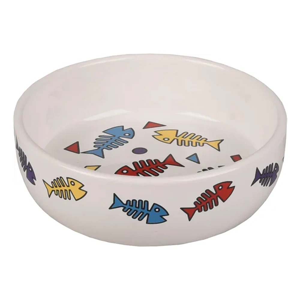 FLMG Barošanas Bļoda Kaķiem Fisk Keramiskā Apaļa Baltā M 13.5x13.5x4 cm 375 ml 506151