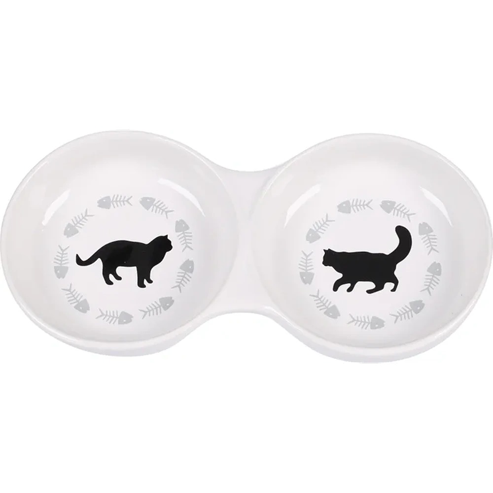 FLMG Barošanas Bļoda Kaķiem Betsy Keramiskā Dubultā Baltā 23x11.5x3.5 cm 2x200 ml 504261