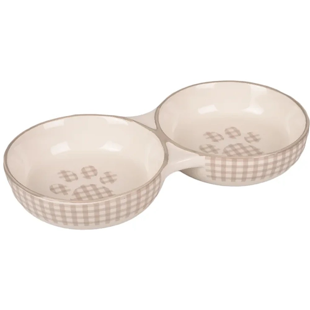 FLMG Barošanas bļoda Kaķim Mylo Keramiskā Dubultā Bēšīgā-baltā 145 ml 2x11 cm 560696