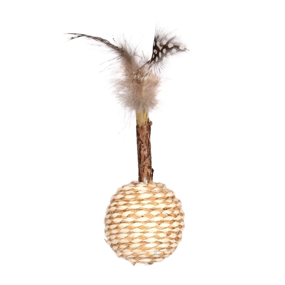 FLMG Rotaļlieta Kaķiem makšķere plastm. ar sizāla bumbu, grabuli un spalvām Cat Dangler 42 cm 561173