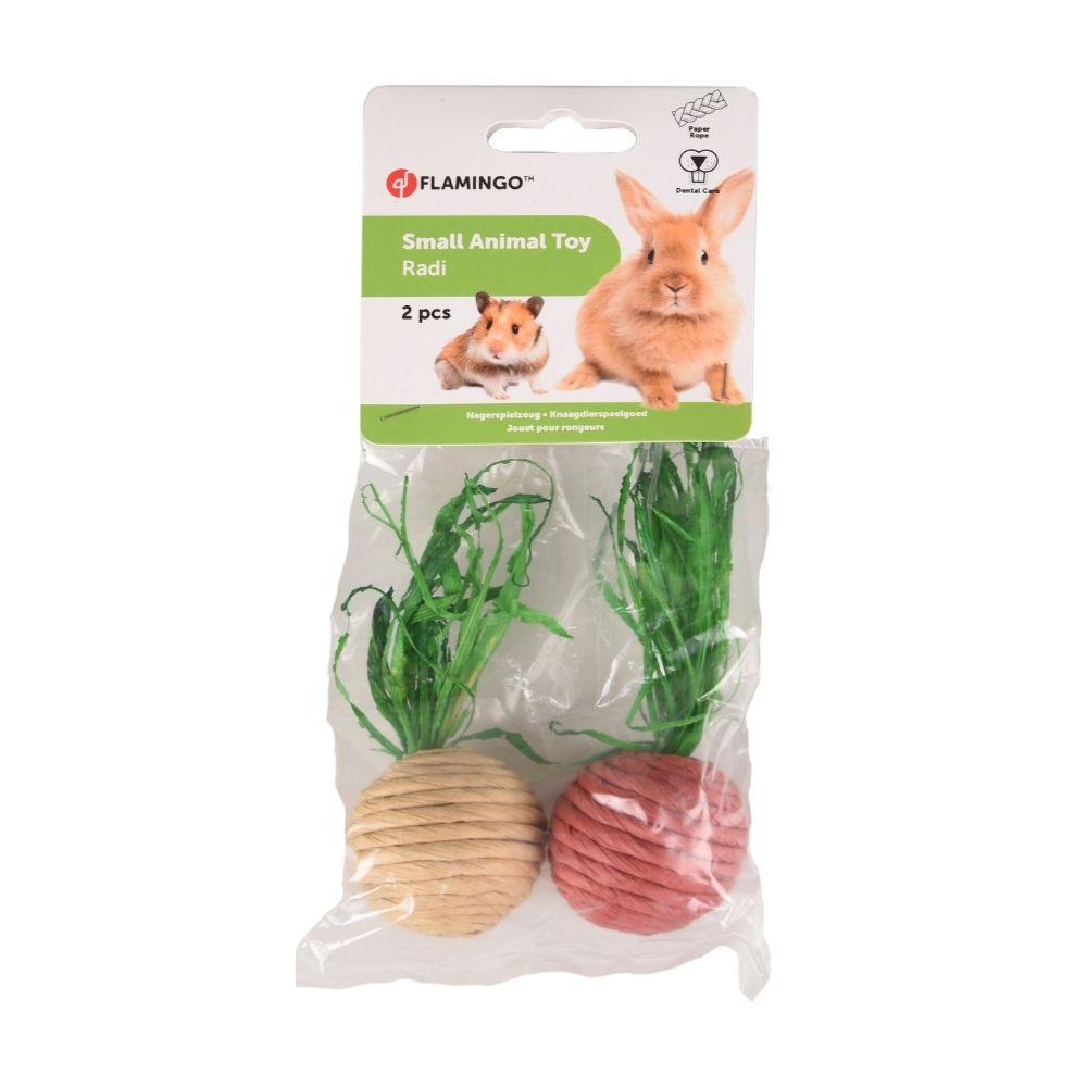 FLMG Rotaļlieta mazajiem dzīvniekiem no papīra Radi ? 4.5 cm 2 gab. 210232 Lietošanai dzīvniekiem. Rotaļlieta mazajiem dzīvniekiem no papīra redīsa formā. Palīdz saglābāt zobus veselīgus. Lieliska izklaide Jūsu dzīvniekam. Uzmanību: šī nav rotaļlieta bērniem (līdz 3 g.v.). Glabājiet bērniem nepiejamā vietā. Vienmēr pieskatiet mājdzīvnieku, spēlējoties ar rotaļlietām. Neļaujiet mājdzīvniekiem spēlēties ar salauztām vai bojātām rotaļlietām! Izgatavots no netoksiskiem materiāla. Izcelsme: Flamingo Pet products, Beļģija. Ražots: ĶTR. Izplata: "BERTAS NAMS" SIA, Ventspils iela 50, Rīga, 80000060.