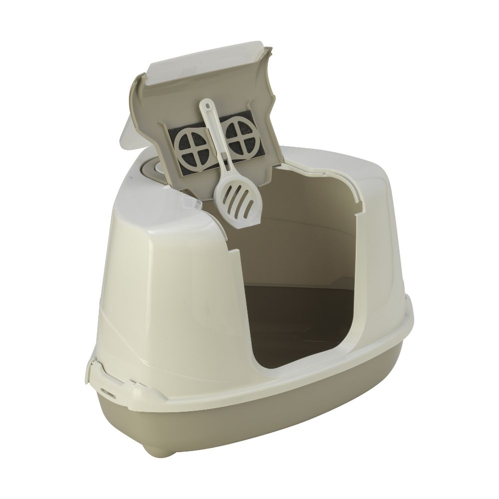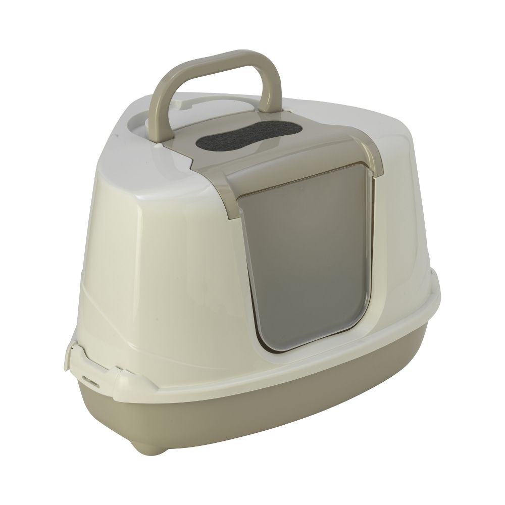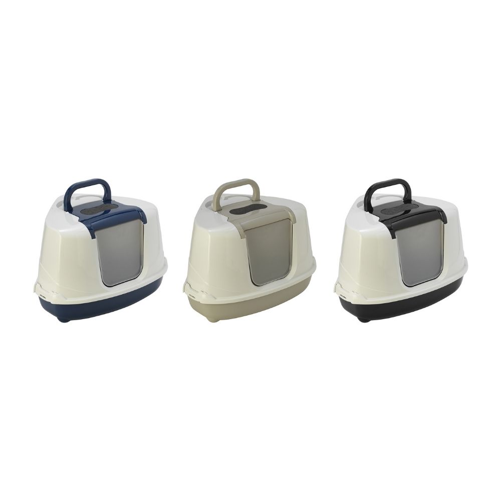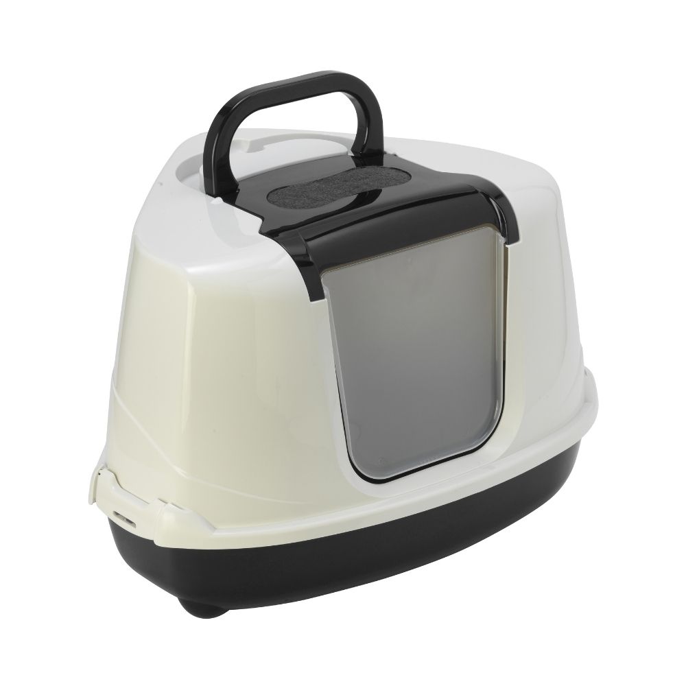 FLMG Tualete Kaķiem Stūra ar vir.durvīm, lāpstiņu,rokturi un ogl. filtru plastm.balta-melna L 560738