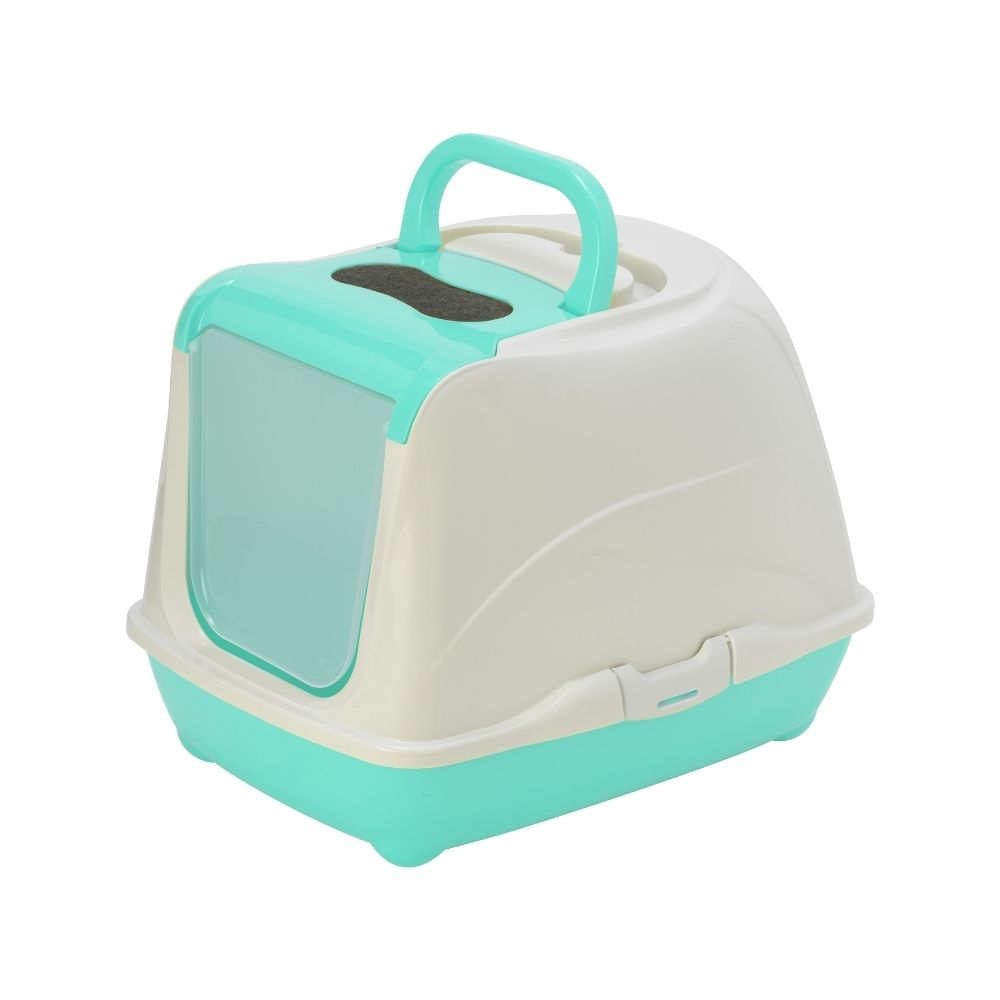 FLMG Tualete Kaķiem-slēgta,ar lāpstiņu Loki Hawai M 38x50x37 cm 560734 Lietošanai dzīvniekiem. Tualete kaķiem,slēgta, Loki Hawai. Izturīga, viegli tīramā, ar oglekļa filtru, rokturi, komplektā ir lāpstiņa. Izmērs: M, 38 x 50 x 37 cm. Veramās durvis, ar noņemamu vāku, kas mazina smakas problēmas. Ūdensizturīgs. Lietošanai iekštelpās. Izcelsme: Flamingo Pet products, Beļģija. Ražots: EU. Izplata: "BERTAS NAMS" SIA, Ventspils iela 50, Rīga, 80000060.